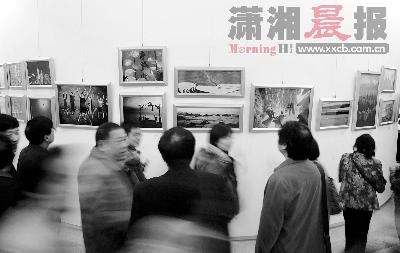 昨日,“愛在中南傳媒”書畫攝影邀請展在湖南美術館舉行,不少市民到現場觀看。