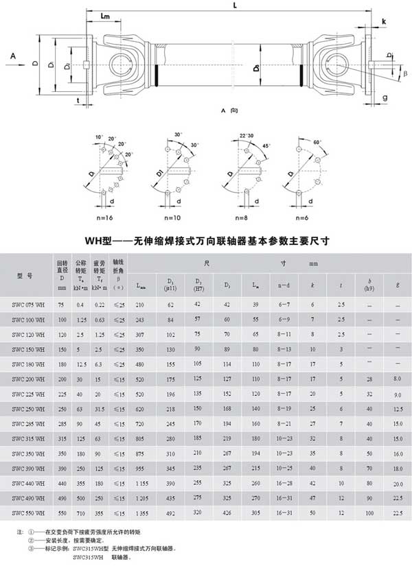 萬向聯軸器的共同特點是角向補償量較大,不同結構型式萬向聯軸器兩軸線夾角不相同,一般≤5°-45°之間。萬向聯軸器利用其機構的特點,使兩軸不在同一軸線,存在軸線夾角的情況下能實現所聯接的兩軸連續回轉,并可靠地傳遞轉矩和運動。萬向聯軸器最大的特點是具有較大的角向補償能力,結構緊湊,傳動效率高。SWC型、SWP型十字軸式萬向聯軸器是一種最常用的聯軸器。利用其結構的特點能使不在同一軸線或軸線折角較大或軸向移動較大的兩軸等角速連續回轉,并可靠地傳遞轉矩和運動。能廣泛應用于冶金、起重、工程運輸、礦山、石油、船舶、煤炭、橡膠、造紙機械及其它重機行業的機械軸系中傳遞轉矩。SWC型、SWP型十字軸式萬向聯軸器的主要特點為:1.具有較大的角度補償能力。2.結構緊湊合理。SWC型采用整體式叉頭,使運載更具可靠性。3.承載能力大。與回轉直徑相同的其它型式的聯軸相比較,其所傳遞的扭矩更大,此對回轉直徑受限制的機械設備,其配套范圍更具優越性。4.傳動效率高。其傳動效率達98-99.8%,用于大功率傳動,節能效果明顯。5.運載平穩,噪聲低,裝拆維護方便。